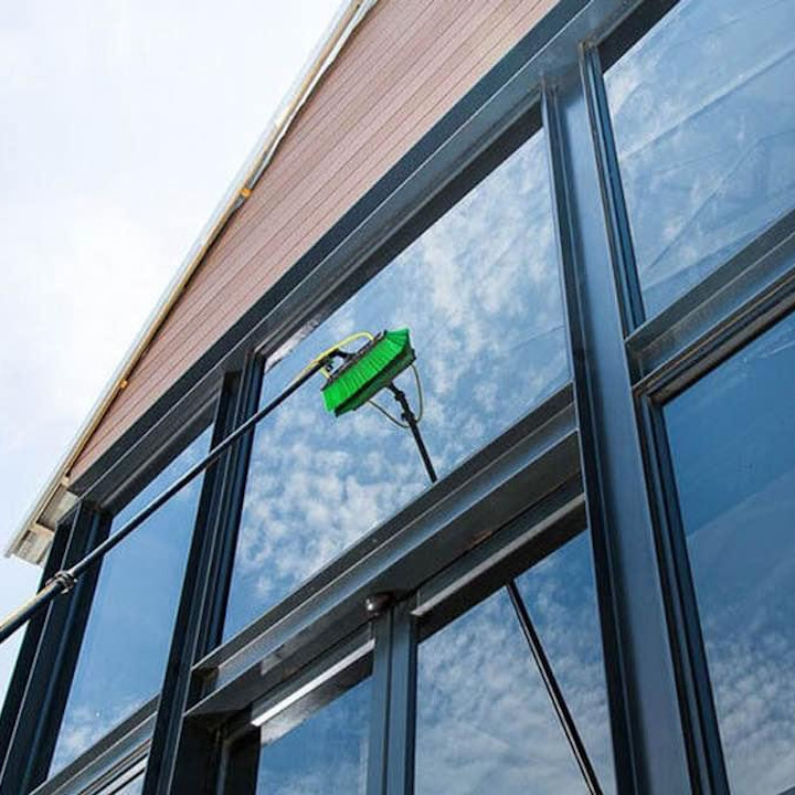 A water-fed pole system allows to reach all windows from ground level making it more efficient and cost effective with no need need for ladders or cherry pickers.